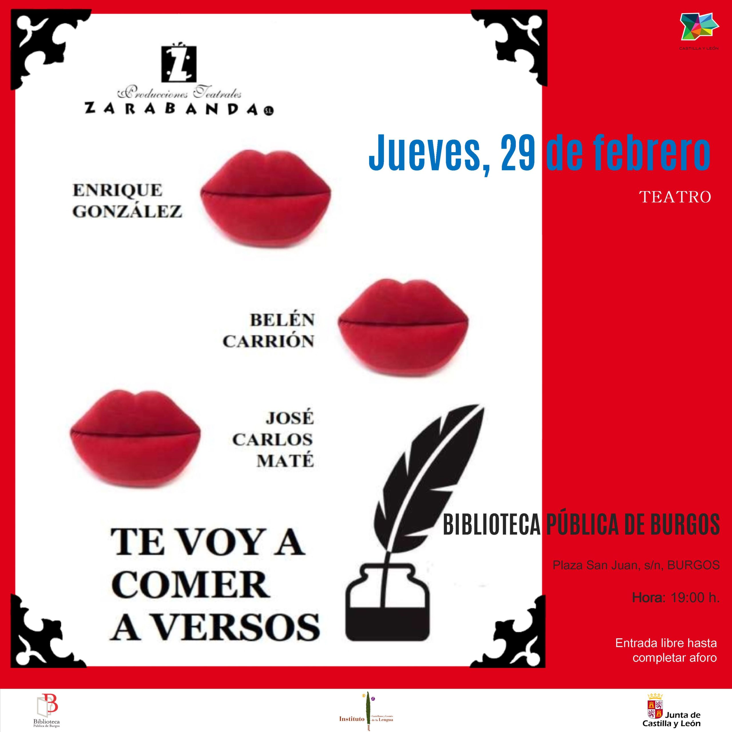“Te voy a comer a versos” en la Biblioteca pública de Burgos (Plaza San Juan, s/n) a las 19:00 horas.