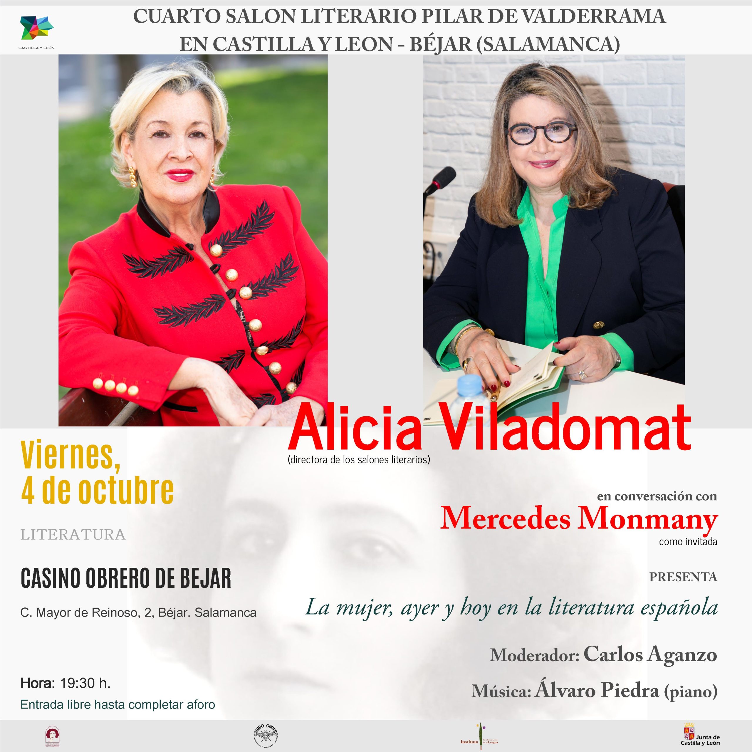 La escritora Mercedes Monmany acude como invitada, el viernes 4 de octubre a las 19.30 horas, al Casino Obrero de Béjar (Salamanca) al cuarto ‘Salón literario Pilar de Valderrama’, que coordina la escritora Alicia Viladomat.