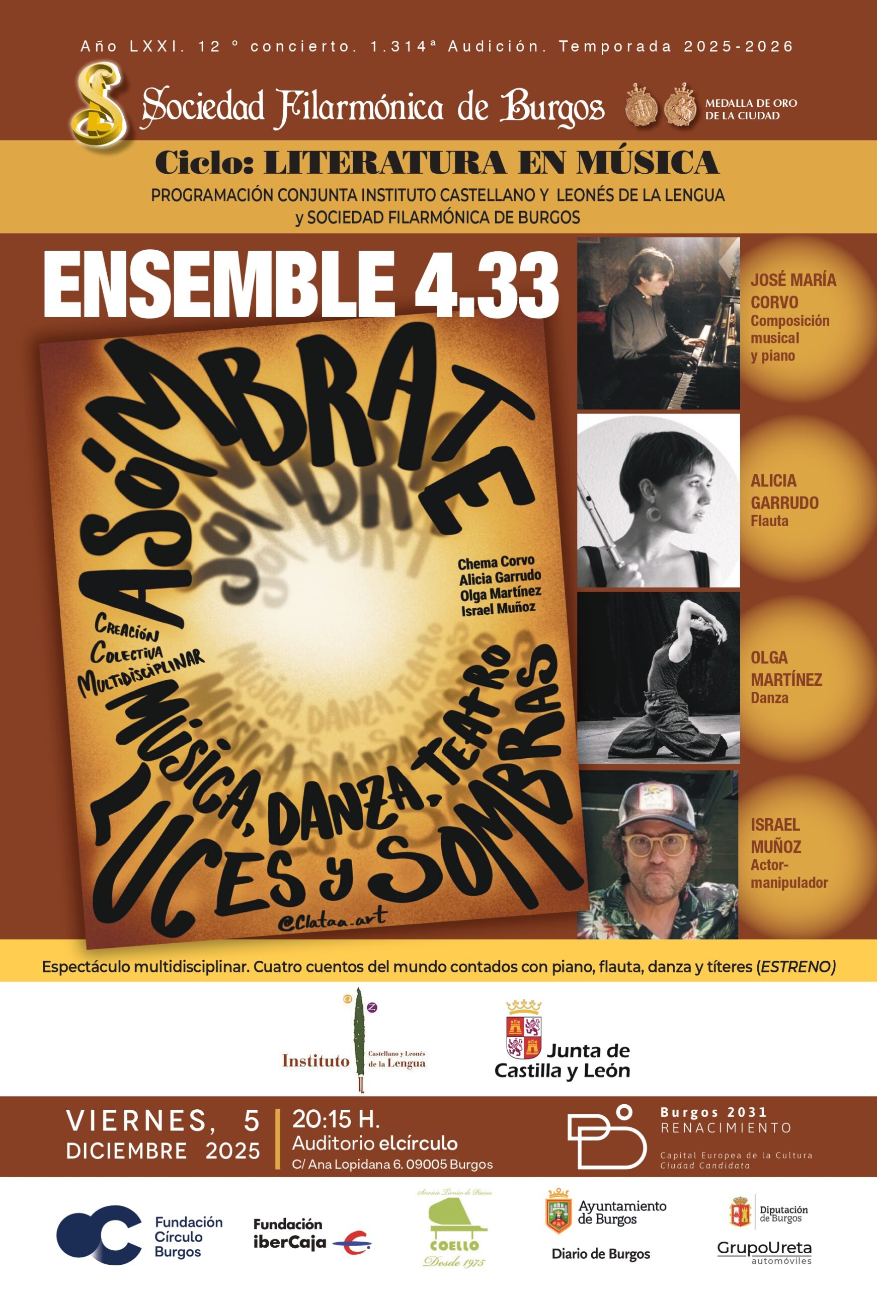 El Instituto Castellano y Leonés de la Lengua y la Sociedad Filarmónica de Burgos programan el viernes, 5 de diciembre, a las 20:15 horas, en el Auditorio ElCirculo de la […]