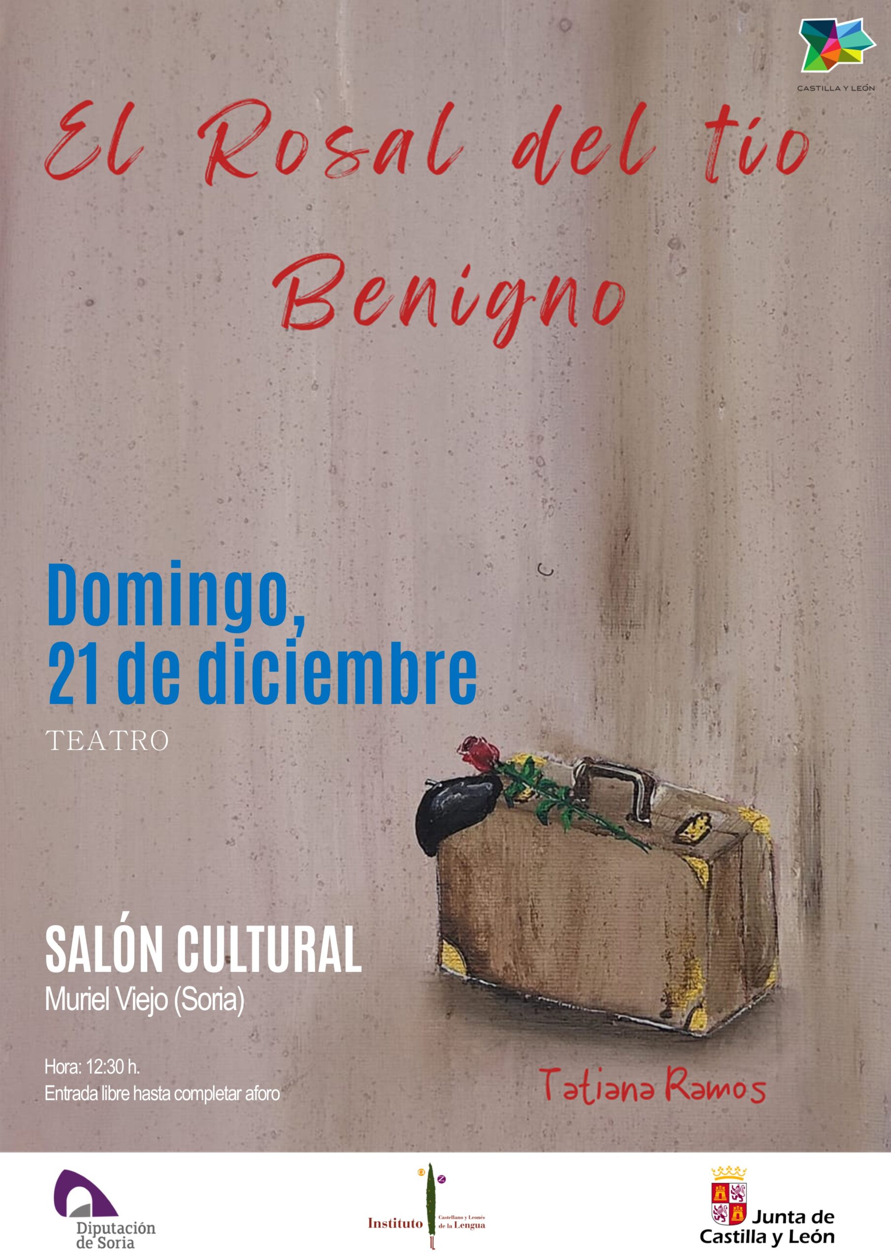 El Instituto Castellano y Leonés de la Lengua y la Diputación de Soria programan el domingo, 21 de diciembre, a las 12:30 horas, en el pequeño municipio soriano de Muriel Viejo, la propuesta de microteatro ‘El rosal del tío Benigno’, puesta en escena de la compañía ‘Pasito a paso’, de la actriz soriana Tatiana Ramos. Se […]