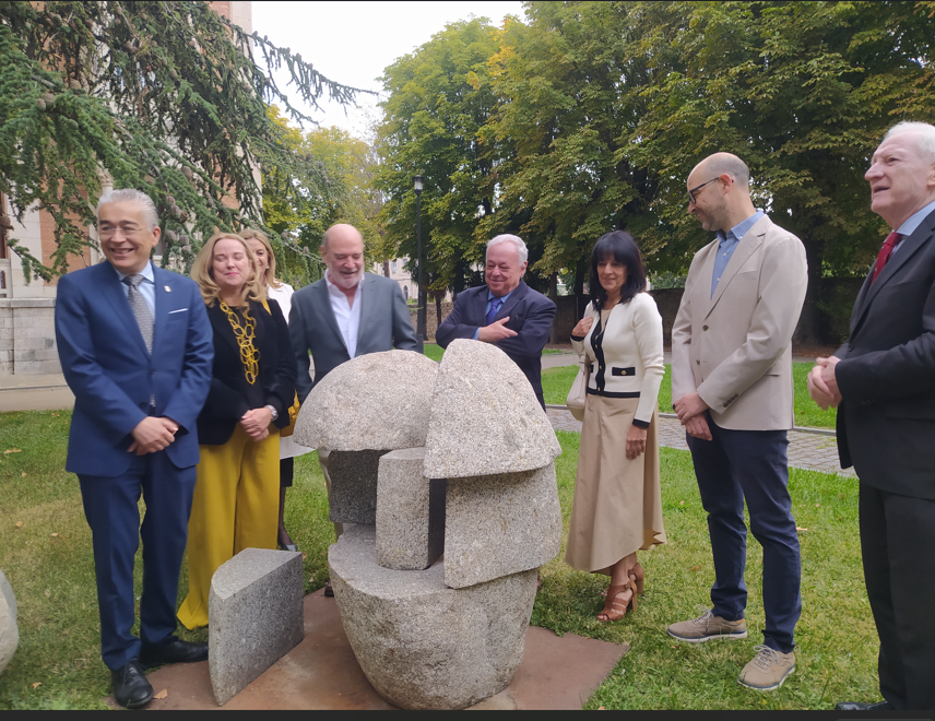 El Instituto Castellano y Leonés de la Lengua ha inaugurado en los jardines del Palacio de la Isla de Burgos la exposición ‘In custodia verbi. Bendita la locura de la piedra’, conjunto escultórico creado por el escultor burgalés Alberto Bañuelos, que toma como punto de partida cantos rodados, alabastro y bolos graníticos. Esta muestra, comisariada por el técnico y crítico de arte Alfonso de la Torre, convierte el conjunto final en garante de la custodia como símbolo de la vigilancia del lenguaje que viene realizando esta institución.