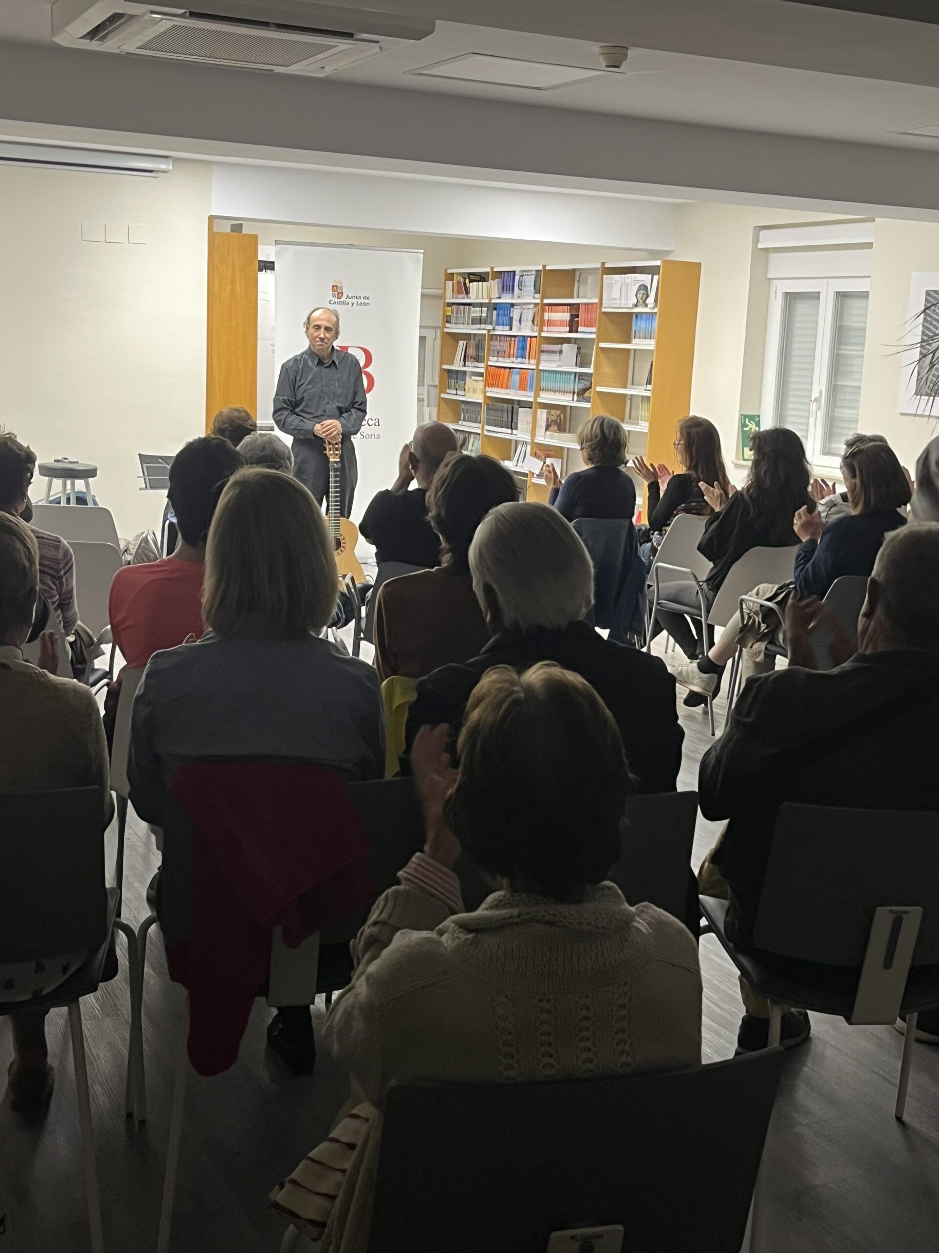 El Instituto Castellano y Leonés de la Lengua y el Ayuntamiento de Soria han organizado en la Biblioteca Pública de Soria el martes, 30 de septiembre, el recital poético ’13 sonetos y una sirena’, un concierto para voz y guitarra con música y letra del compositor y dramaturgo zamorano Daniel Pérez. Este recital presenta la originalidad de recurrir a la fórmula del uso del soneto en las estrofas, composición poética poco frecuente en la letra de las canciones, pero de larga tradición en la literatura en lengua española, donde ha sido empleado con frecuencia por autores clásicos como Garcilaso...