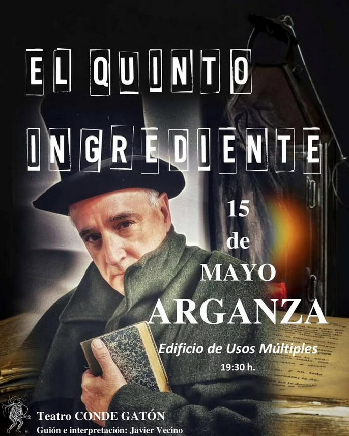 El Consejo Comarcal del Bierzo y el Instituto Castellano y Leonés de la Lengua prosiguen con la propuesta de espectáculos escénicos ‘Teatro en la Domus y en los pueblos del Bierzo’, con la programación en Arganza el jueves, 15 de mayo, a las 19:30 horas, en la sala de Usos Múltiples de la obra teatral ‘El quinto ingrediente’, dirigida por la joven compañía de teatro Conde Gatón. con guion e interpretación de Javier Vecino. Esta puesta en escena constituye un recorrido poético por la historia de esta comarca.