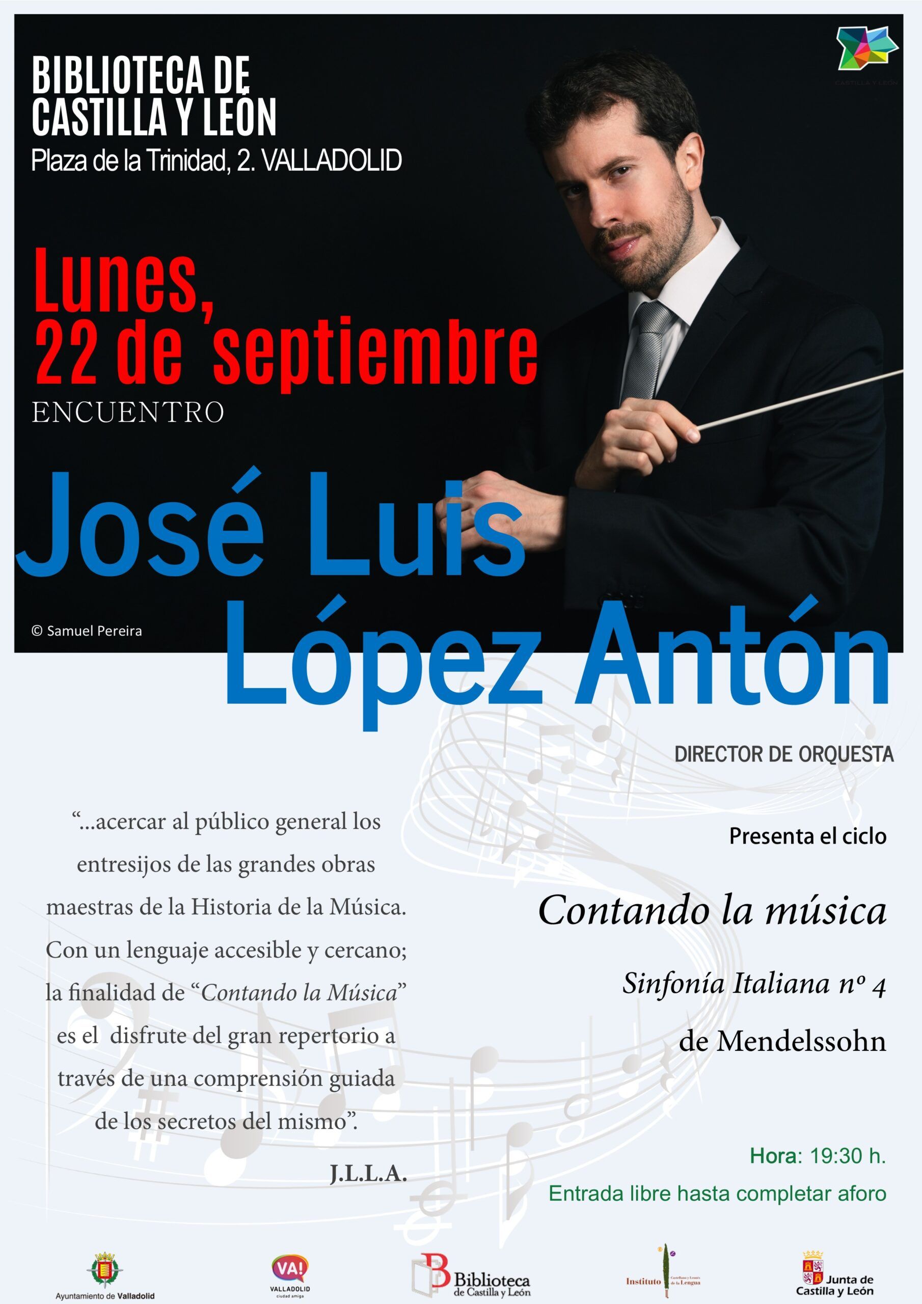El Ayuntamiento de Valladolid y el Instituto Castellano y Leonés de la Lengua organizan el lunes, 22 de septiembre, a las 19:30 horas, en la Biblioteca Pública de Castilla y León de Valladolid, una nueva sesión de ‘Contando la música’, la charla de apreciación musical que imparte José Luis López Antón, director de la Orquesta Sinfónica de Ávila. En este encuentro con la música clásica, el invitado analizará la Sinfonía n.º 4 en La mayor, Op. 90, Italiana, de Félix Mendelssohn, compuesta entre 1830 y 1833, e inspirada en el viaje que el compositor realizó por Italia unos años antes.