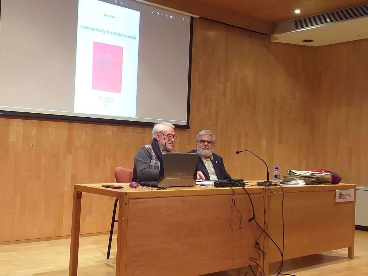 El Instituto Castellano y Leonés de la Lengua y el Ayuntamiento de Soria han organizado en el Centro Cultural Gaya Nuño de la capital soriana el miércoles, 9 de abril, la presentación del libro FLOrecen hacia el olvido tus paSOS (Colección Caligramas, Universidad de León, 2024) del zamorano Justo Alejo (Formariz, 1935-Madrid, 1979), en edición coordinada por Manuel Ángel Delgado de Castro. El autor de la edición ha estado acompañado durante la presentación por el docente y poeta César Ibáñez París.