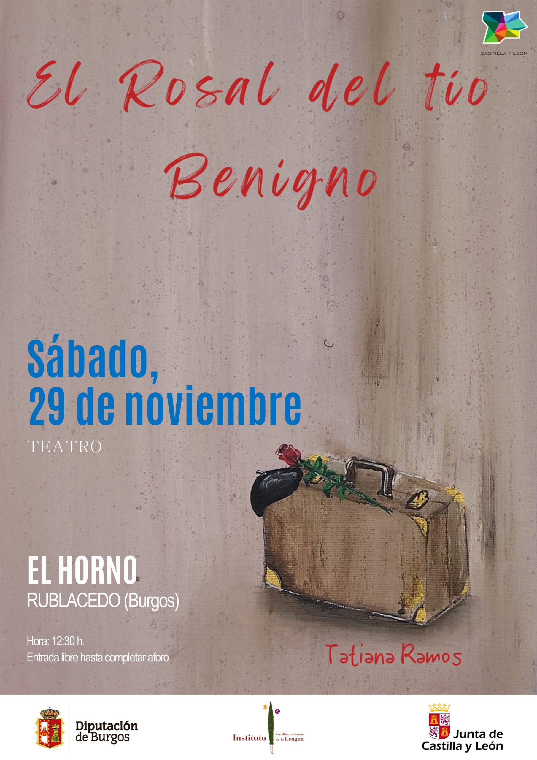 La Diputación de Burgos y el Instituto Castellano y Leonés de la Lengua programan en los pequeños municipios burgaleses de Rublacedo, Villanueva Rampalay, Urrez y Villambistia la propuesta de microteatro ‘El Rosal del Tío Benigno’, puesta en escena de la compañía ‘Pasito a paso’, de la actriz soriana Tatiana Ramos. Se trata de una iniciativa conjunta dirigida a localidades con poca población y que tienen más dificultades para acceder a actividades culturales.