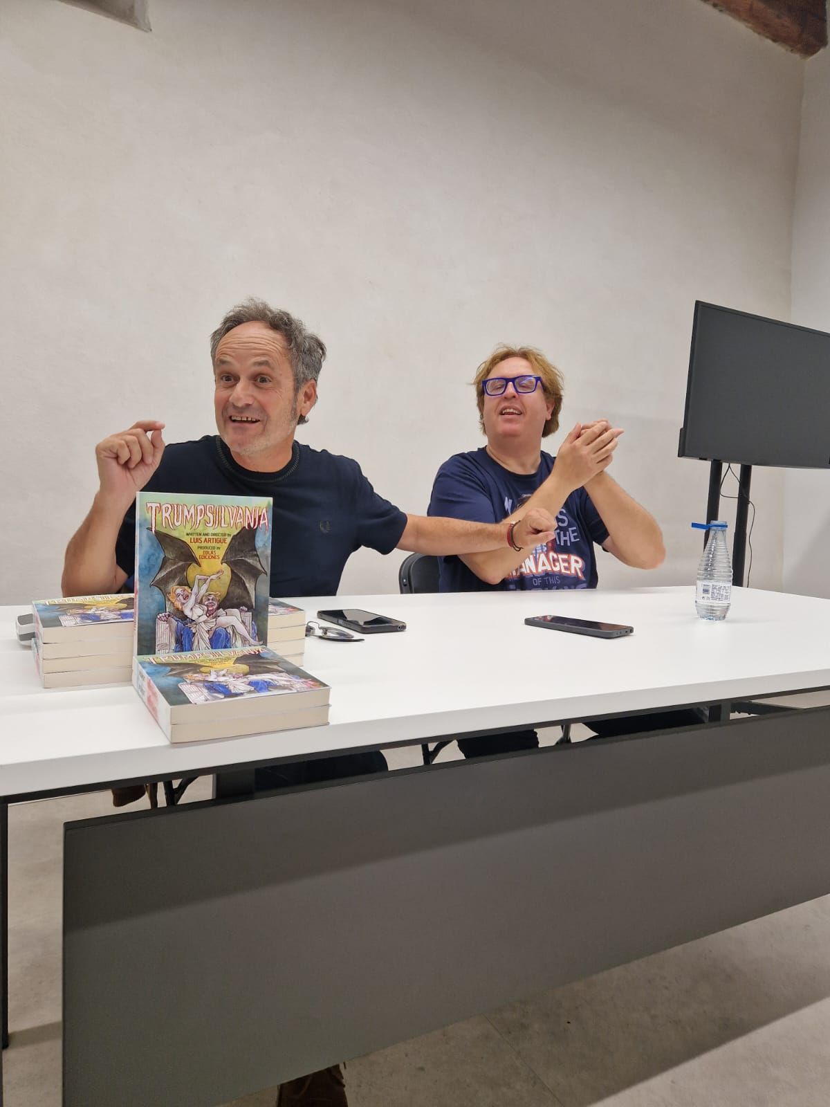 El Instituto Castellano y Leonés de la Lengua y el Ayuntamiento de Salamanca han organizado el martes, 30 de septiembre, en el Centro Cultural Torre de los Anaya la presentación del libro ‘Trumpsilvania’ (Eolas Ediciones), última novela del escritor leonés Luis Artigue. Se trata de un título de regusto pulp en la cual el autor se imagina una distopía no tan distópica: la decisión de Donald Trump de crear un gobierno paritario de humanos… contra vampiros. Artigue ha estado acompañado durante esta presentación por Héctor Escobar, editor de Eolas Ediciones.