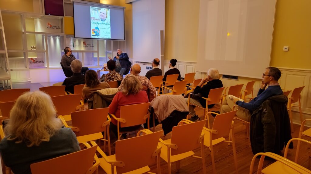 El Instituto Castellano y Leonés de la Lengua ha organizado el jueves, 27 de noviembre, en el Palacio de la Isla de Burgos, la presentación del libro El vuelo de los delfines (Ediciones Valnera), la nueva novela del escritor y crítico literario José Ignacio García. El título ofrece una historia coral en la que se suceden los conflictos; se trata un relato que lleva al lector a conocer los pensamientos de cada personaje, sus incertidumbres, miedos y expectativas. Organizado con la colaboración de la Asociación de Libreros de Burgos, el autor ha estado acompañado durante la presentación por el periodista Alberto Marroquín.