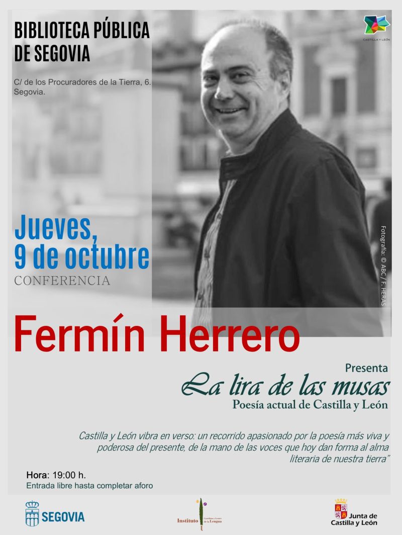 El Instituto Castellano y leonés de la Lengua y el Ayuntamiento de Segovia promueven en la Biblioteca pública de la capital segoviana el jueves, 9 de octubre, a las 19:00 horas, la primera sesión del nuevo encuentro literario ‘La lira de las musas. Poesía actual de Castilla y León, ciclo de nueva creación coordinado y presentado por el poeta soriano Fermín Herrero. Con esta nueva propuesta divulgativa, Herrero pretende presentar las líneas generales y los nombres de un panorama extenso y fructífero de autores que coexisten en la Comunidad en un momento marcado por la ausencia de corrientes dominantes y caracterizado por multitud de voces originales dispares que deben ser tenidas en cuenta.