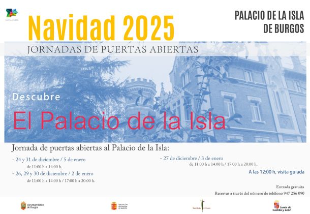 El Instituto Castellano y Leonés de la lengua ha organizado el sábado, 10 de mayo, en horario de 11:00 a 14:00 horas, ‘Los Sábados en Palacio’, una nueva jornada de puertas abiertas al Palacio de la Isla, que ha incluido una visita guiada (12:00 h) de carácter gratuito que permite al visitante acercarse a la historia de uno de los edificios más emblemáticos de la capital burgalesa. Esta propuesta, organizada con la colaboración de la Asociación de Guías de Burgos, pretende dar a conocer el trabajo de la institución en el ámbito de la investigación de orígenes del español y en la promoción de la literatura de la Comunidad.