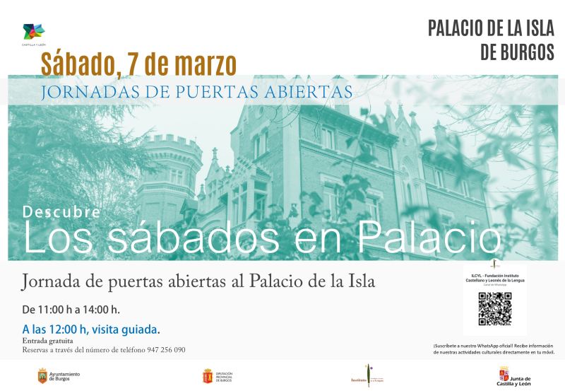 El Instituto Castellano y Leonés de la Lengua organiza el sábado, 7 de marzo, en horario de 11:00 a 14:00 horas, una nueva sesión de ‘Los Sábados en Palacio’, la jornada de puertas abiertas que permite al visitante conocer tanto la abundante historia que rodea al Palacio de la Isla de Burgos como el trabajo que esta institución realiza desde hace más de dos décadas en el ámbito de la investigación de los orígenes del español y de la promoción de la literatura de Castilla y León. La programación de una visita guiada gratuita a las 12:00 horas permite conocer a fondo el inmueble y el trabajo que desarrolla la institución.