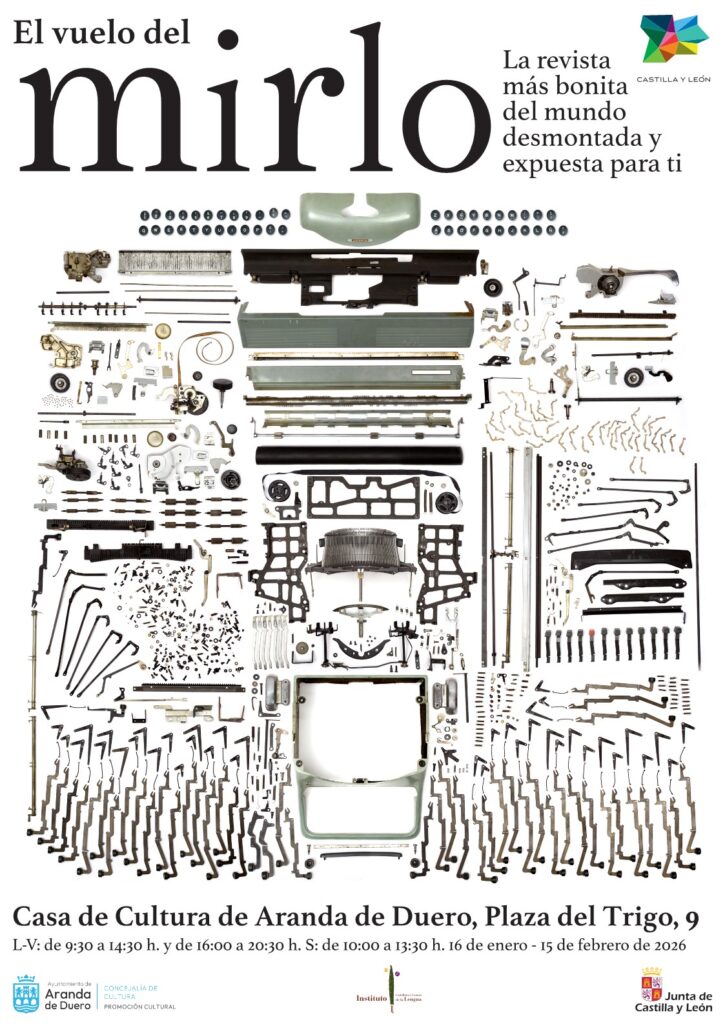 Óscar Esquivias, fundador y comisario de la exposición, se mostró entusiasmado por poder trasladar a Aranda su proyecto creativo: “Estamos muy felices de estar en una ciudad donde la vida cultural tiene tanto arraigo. Cada número de Mirlo nace del diálogo entre imagen y palabra, donde los textos y las fotografías se compensan y se leen mutuamente. Esta exposición es como abrir nuestra mente: rescata belleza en lo cotidiano, desde máquinas de escribir hasta paisajes urbanos, y permite que los visitantes descubran la creatividad que hay detrás de cada número”, ha apuntado.