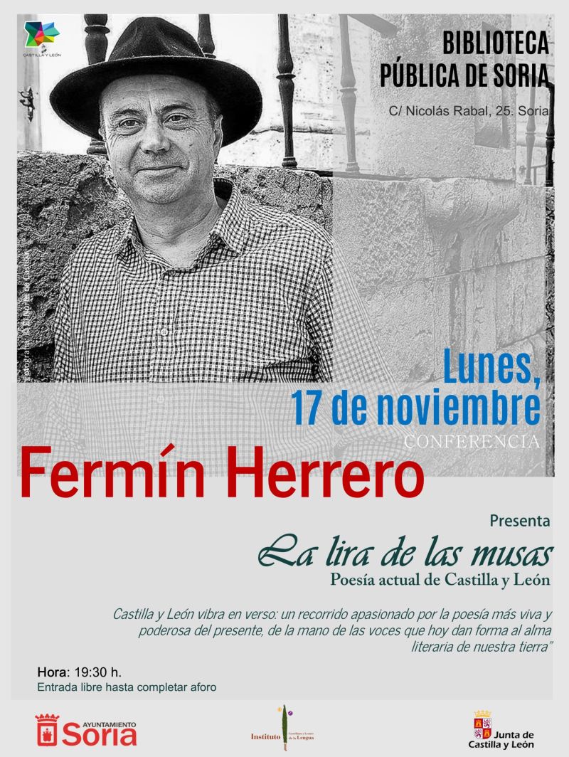 Licenciado en Filología Hispánica por la Universidad de Zaragoza, el soriano Fermín Herrero es Premio de las Letras de Castilla y León 2014 otorgado a su trayectoria poética y Premio de la Crítica de Castilla y León por su poemario La gratitud. El núcleo de su obra, en torno a una veintena de libros, se ha publicado en Hiperión, como Sin ir más lejos, Premio Nacional de la Crítica. Su entrega más reciente es Estancia de la plenitud (Pre-Textos). Colabora en revistas literarias y de pensamiento como Turia y, en prensa escrita, en El Norte de Castilla y el ABC de Castilla y León.